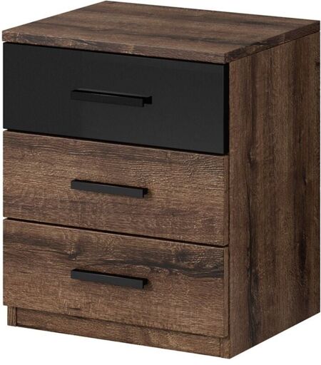 MEUBLORAMA - Comodino a tre cassetti, collezione floyd. Colori rovere scuro e nero lucido.