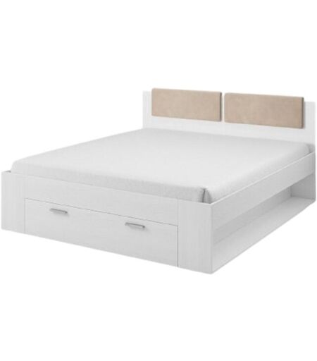 Letto matrimoniale 140x200 con cassetti integrati. Colore bianco effetto legno collezione FLOYDQuesto letto matrimoniale della collezione FLOYD trasformerà la tua camera da letto in un vero e proprio rifugio, permettendoti di rilassarti e riposarti. Non aspettare oltre, porterà immediatamente comfort ed eleganza alla tua stanza grazie al suo design moderno.- COMPOSIZIONE: Letto + testiera + rete + cassetti- DIMENSIONI: Letto + testiera: larghezza 146 x lunghezza 205 x altezza 101 cm. (Dimensione materasso 140x200 cm)- COLORI: Bianco effetto legno.- STRUTTURA: Pannelli di particelle e MDF di alta qualità.- CARATTERISTICHE: Letto 140x200 con cassetti integrati e rete. ****MATERASSO NON INCLUSO**** Letto disponibile in diverse dimensioni e vari colori. Scopri anche il resto della collezione FLOYD nel nostro negozio: armadi, comò, set completi per la camera da letto... ...
