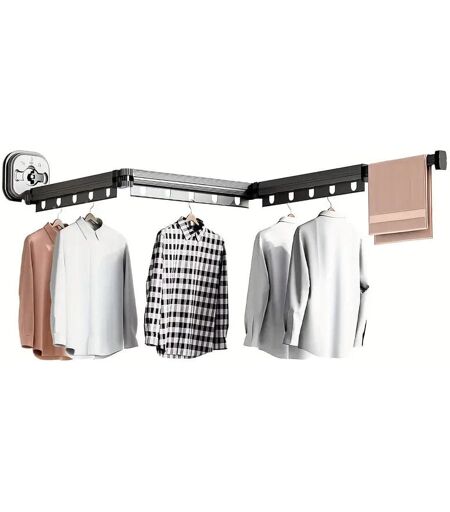Ottimizzazione dello spazio: Questo stendibiancheria a muro telescopico e pieghevole si ripiega contro il muro quando non viene utilizzato, ideale per spazi piccoli (balconi, bagni, lavanderie). Design pieghevole a tre pieghe per una conservazione discreta. Installazione facile senza forare: Fissaggio rapido e semplice grazie a un potente sistema di ventose per superfici lisce (piastrelle, metallo, marmo, vetro...). Nessun bisogno di attrezzi! Senza chiodi né viti. Robusto e durevole in alluminio: Realizzato in alluminio resistente alla corrosione, al calore e alla ruggine. Adatto per l'uso sia interno che esterno, in qualsiasi condizione climatica. Grande capacità di asciugatura: Stendibiancheria retrattile con lunghezza estensibile fino a 125 cm e 15 ganci retrattili per appendere vestiti, asciugamani e accessori. Può ospitare anche 15 grucce. Versatile e pratico: Stendibiancheria murale rotante a 360° per un'asciugatura ottimale. Ideale per asciugare i vestiti, ma anche per riporre ...