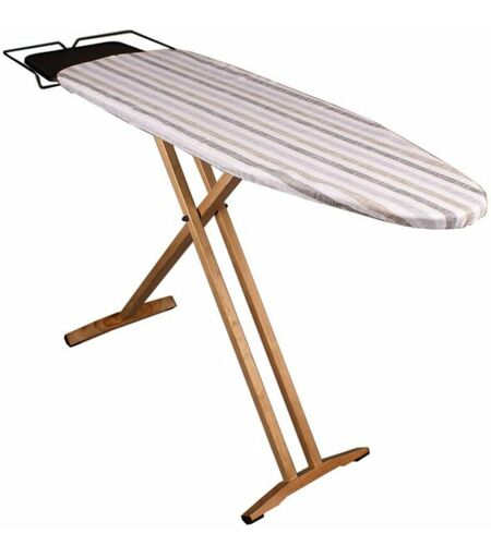 L'Asse da Stiro Pieghevole NUBAR in legno massello combina estetica e robustezza per una stiratura di alta qualità. La sua struttura in pino trattato garantisce un'eccellente stabilità. Il design elegante si integra perfettamente nel vostro arredamento.Beneficiate di una grande superficie di stiratura di 125x41 cm (leggera discrepanza con il titolo, ma fedele alla descrizione del prodotto) per un comfort ottimale su tutti i tipi di biancheria. Il meccanismo di piegatura sicuro e il peso ridotto (7.6Kg) facilitano lo stoccaggio e lo spostamento.L'asse è dotata di un ampio poggia-centrale a vapore resistente al calore (43x28 cm), adatto a potenti centrali a vapore e ferri tradizionali. Progettato per destrorsi e mancini, offre uno spazio di lavoro sicuro.Il copriasse 100% cotone di qualità superiore, abbinato a una schiuma spessa di 8 mm, garantisce uno scorrimento perfetto del ferro e un comfort di stiratura eccezionale, riducendo l'affaticamento. Il copriasse è rimovibile e ...
