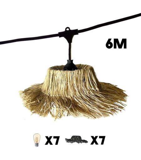 Stringa di luci E27 collegabile: Tahiti Light Connectable è una stringa di luci con lampadine a filamento E27 dotate di ganci per appenderle a piacere. Grazie al suo sistema di estensione è possibile collegare 10 ghirlande contemporaneamente per avere una bella lunghezza di cavo e ancora più luce. Questa ghirlanda LED con paralume in paglia si distingue per il suo design bohémien e di tendenza. È ideale per illuminare le vostre serate e vi piacerà il suo design e il suo lato esotico per illuminare i vostri eventi più belli. Uso interno/esterno: dopo aver collegato la ghirlanda luminosa alla rete elettrica (presa da 220 V), potrete utilizzare questa ghirlanda bohémien ovunque, sia all'interno che all'esterno. La ghirlanda collegabile Tahiti Light porterà una decorazione chic e di tendenza nel vostro ambiente. Pratica: questa ghirlanda luminosa a LED può essere utilizzata sia all'interno che all'esterno. Porterà sulla vostra terrazza o in giardino un'atmosfera festosa in uno spirito ...