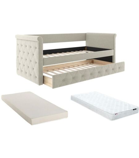 Unique - Letto divano a scomparsa trapuntato 2 x 90 x 190 cm in Tessuto Beige + Materasso - louise