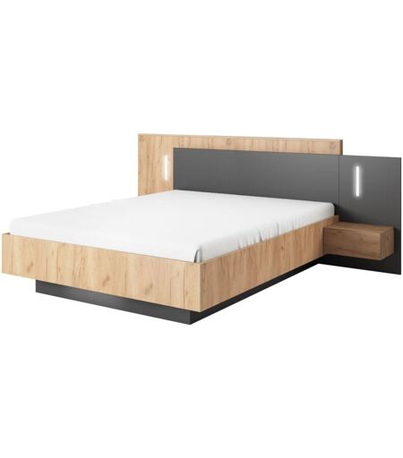 Unique Letto con comodini 160 x 200 cm 2 cassetti Con LED Naturale e Antracite - FRANCOLI