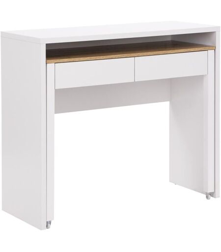 Unique - Scrivania consolle allungabile con 2 cassetti Bianco e Naturale - loavia