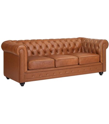 Unique - Divano 3 posti in Pelle di Vacchetta Cammello - chesterfield