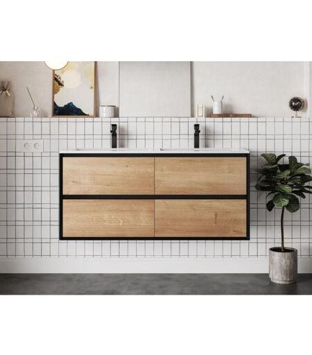 Unique Mobile bagno sospeso 120 cm con lavabo a incasso Naturale Chiaro e Nero - LANNICK