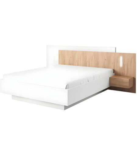Unique - Letto con comodini 160 x 200 cm 2 cassetti Con led Bianco e Naturale - francoli