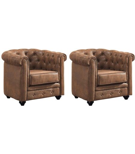 Unique Lotto di 2 poltrone chesterfield in microfibra effetto cuoio invecchiato