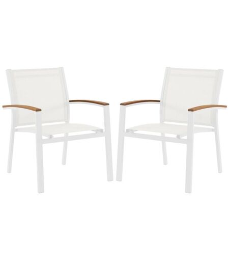 Unique - Sedia giardino impilabili in Alluminio textilene Bianco braccioli Acacia - Lotto di 2 - taipivai di mylia