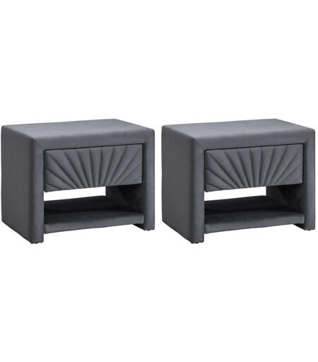 Unique - Lotto di 2 comodini 1 cassetto e 1 nicchia Velluto Antracite - ulami
