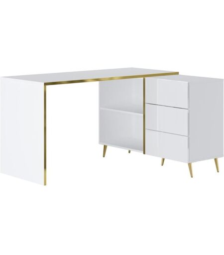 Unique - Scrivania angolare con cassetti e nicchie Bianco brillante e Dorato marzialo