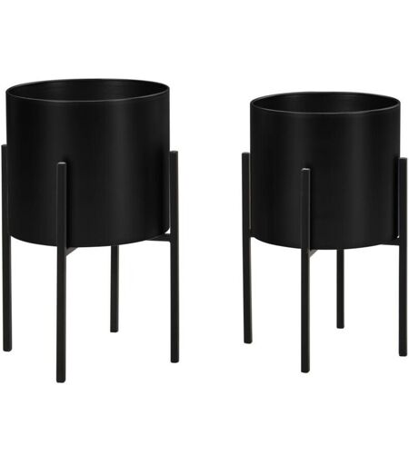 Unique Set di 2 vasi decorativi su piedistallo in metallo - D. 25 x H. 39 e D. 23 x H. 35.5 - Nero opaco - EDMEE