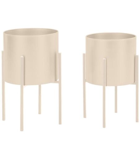 Unique Set di 2 vasi copri-vaso su piede in metallo - D. 25 x H. 39 e D. 23 x H. 35.5 - Beige - EDMEE