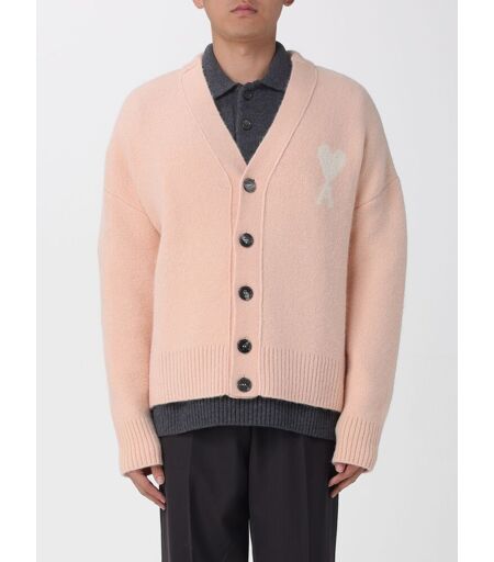 Ami Paris Cardigan in lana di Alpaca con logo Rosa Taglia L