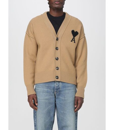 Ami Paris Cardigan in lana merino con logo Marrone Taglia XL