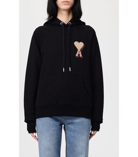 Ami Paris Felpa con cappuccio in cotone con logo Nero Taglia M