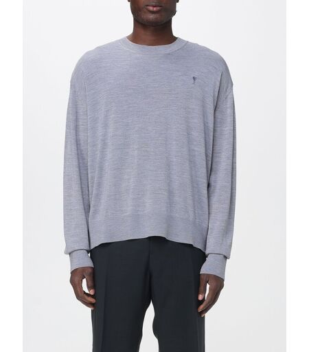 Ami Paris Maglia a girocollo in lana con logo Grigio Taglia XXL