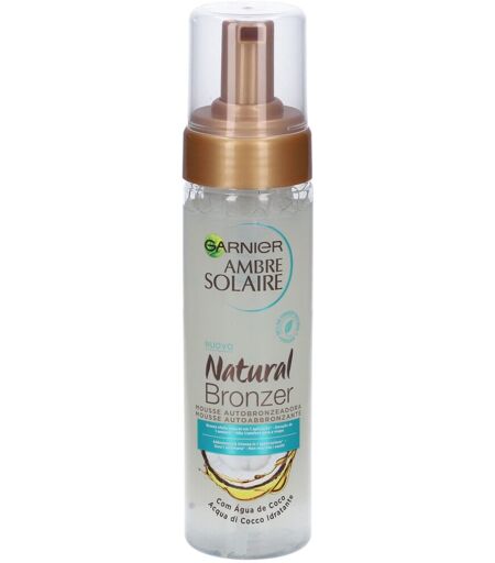 Garnier Ambre Solaire Natural Bronzer Mousse Autoabbronzante Mousse autoabbronzante adatto a viso e corpo, arricchita con Glicerina e Acqua di Cocco Idratante per un effetto abbronzatura naturale radioso e uniforme uniforme e naturale, che dura fino ad una settimana*, con una sola applicazione. Asciugatura rapida. Fragranza estiva al cocco. Consigli per l'uso: Applicare in modo uniforme sulla pelle asciutta, Massaggiare delicatamente con movimenti circolari fino al completo assorbimento, quindi risciacquare bene le mani, Attendere un'ora per vedere il risultato, Per un colorito più duraturo, esfoliare la pelle con uno scrub prima dell'applicazione - Contenuto: 1x Mousse autoabbronzante per viso e corpo Garnier Ambre Solaire Natural Bronzer, 200 ml *Test strumentale - 22 soggetti, dopo un'applicazione. Modo d'uso: Mousse autoabbronzante adatto a viso e corpo, arricchita con Glicerina e Acqua di Cocco Idratante per un effetto abbronzatura naturale radioso e uniforme uniforme e naturale, che dura fino ad una settimana*, con una sola applicazione. Asciugatura rapida. Fragranza estiva al cocco. Composizione: Aqua / Water ,Glycerin ,Dihydroxyacetone ,Propanediol ,Polyglyceryl-4 Caprate ,Decyl Glucoside ,Cocos Nucifera Fruit Juice / Coconut Fruit Juice ,Alcohol ,Sodium Phytate ,Sodium Benzoate ,Salicylic Acid ,Limonene ,Benzyl Salicylate ,Benzyl Alcohol ,Linalool ,Benzyl Benzoate ,Caprylyl/capryl Glucoside ,Citral ,Citric Acid ,Potassium Sorbate ,Parfum / Fragrance Aqua / Water ,Glycerin ,Dihydroxyacetone ,Propanediol ,Polyglyceryl-4 Caprate ,Decyl Glucoside ,Cocos Nucifera Fruit Juice / Coconut Fruit Juice ,Alcohol ,Sodium Phytate ,Sodium Benzoate ,Salicylic Acid ,Limonene ,Benzyl Salicylate ,Benzyl Alcohol ,Linalool ,Benzyl Benzoate ,Caprylyl/capryl Glucoside ,Citral ,Citric Acid ,Potassium Sorbate ,Parfum / Fragrance ...