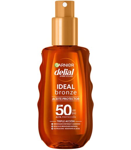 DELIAL IDEAL BRONZE olio protettivo SPF50. Protezione solare corpo. Tipo di Pelle: Tutti Tipi di Pelle. Testura: Olio. Formato: Spray. Altre caratteristiche: Impermeabile. Protezione SPF: SPF 50 alto ...
