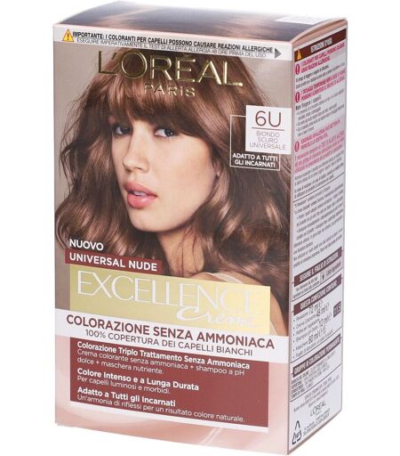 L'oreal Paris L’Oréal Paris Colorazione Permanente Excellence Universal Nude, Senza Ammoniaca, Con Riflesso Universale, Adatto a Tutti gli Incarnati, Colore Intenso Lunga Tenuta, Biondo Scuro 6u 1 St