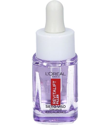 L'Oreal Paris Skincare Revitalift Filler Anti Eta' Revitalift Filler contiene un ingrediente importante: l'acido ialuronico . Questo principio attivo riduce le rughe e ripristina il volume della pelle. Dopo 4 ore, la pelle è più soda, più resistente e intensamente idratata fino a 48 ore. Dopo 4 settimane, le rughe sulla fronte e le zampe di gallina risultano notevolmente ridotte. Il volume del tuo viso è visibilmente migliorato. In questo modo potrai mantenere il tuo aspetto giovanile giorno dopo giorno. Modo d'uso: Due volte al giorno, applicare 2-3 gocce sulla pelle pulita. Ingredienti: Aqua (Water), Glycerin, Hydroxyethylpiperazine Ethane Sulfonic Acid, Sodium Hyaluronate, Citric Acid, Dipeptide Diaminobutyroyl Benzylamide Diacetate, Secale Cereale Seed (Rye Seed) Extract, Sodium Acetylated Hyaluronate, Trisodium Ethylenediamine Disuccinate, Ascorbyl Glucoside, Peg-60 Hydrogenated Castor Oil, Pentylene Glycol, Benzyl Alcohol, Benzyl Benzoate, Benzyl Salicylate, Citronellol, Linalool, Chlorphenesin, Phenoxyethanol, Parfum (Fragrance). ...
