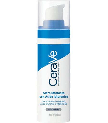 CeraVe Siero Idratante Viso con acido ialuronico 30 ml - Trattamento CosmeticoSiero gel in crema per un’intensa idratazione.Un siero idratante leggero per 24 ore di idratazione, formulato con 3 Ceramidi Essenziali e Acido Ialuronico. Il Siero Idratante con Acido Ialuronico aiuta a trattenere l’idratazione della pelle e a proteggere la naturale barriera cutanea.INGREDIENTIAQUA / WATER / EAU, GLYCERIN, CETEARYL ALCOHOL, CAPRYLIC/CAPRIC TRIGLYCERIDE, CETYL ALCOHOL, CETEARETH-20, PETROLATUM , POTASSIUM PHOSPHATE, CERAMIDE NP, CERAMIDE AP, CERAMIDE EOP, CARBOMER, DIMETHICONE , BEHENTRIMONIUM METHOSULFATE, SODIUM LAUROYL LACTYLATE, SODIUM HYALURONATE, CHOLESTEROL, PHENOXYETHANOL, DISODIUM EDTA, DIPOTASSIUM PHOSPHATE, TOCOPHEROL, PHYTOSPHINGOSINE, XANTHAN GUM, ETHYLHEXYLGLYCERINGli ingredienti vengono aggiornati regolarmente. Fare riferimento all'elenco degli ingredienti sul pack prodotto per l'elenco più aggiornato.BENEFICIIl Siero Idratante con Acido Ialuronico può essere utilizzato da solo, prima di una crema idratate o come base per il makeup.Aiuta a proteggere la barriera cutanea e a trattenere la naturale idratazione della pelleArricchito con 3 Ceramidi Essenziali, Acido Ialuronico e Vitamina B5Delicato sulla pelleMODO D'USOApplicare su viso e collo quotidianamente. Può essere utilizzato da solo, prima di una crema viso idratante e come base per il makeup. In caso di contatto con gli occhi risciacquare con acqua.Perché non costruire la tua Routine CeraVe? Prima applica il tuo Detergente Cerave, successivamente il Contorno Occhi, poi il Siero Idratante con Acido Ialuronico per una dose di idratazione e infine applica la tua crema viso con SPF30 o 50 al mattino e PM la sera. FORMATOFlacone airless 30 ml. ...
