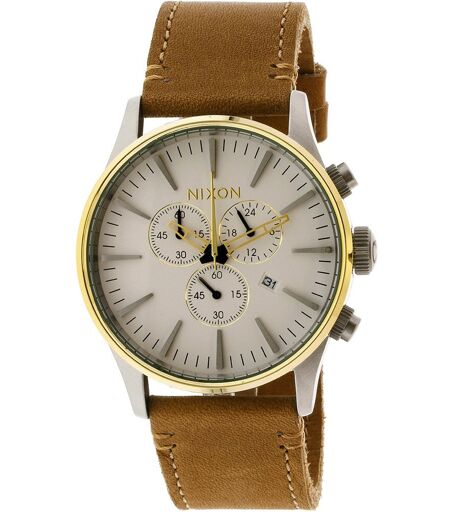 Orologio Uomo Quarzo Nixon A4052548.Movimento:Quarzo.Schermo:Analogico.Materiale della custodia:Acciaio.Colore della cassa:D'oro.Materiale del cinturino:Pelle.Colore del cinturino:Marrone.Colore quadrante:Grigio.Bicchiere:Minerale.Cierre:Fibbia.Genere:Uomo.Diametro del quadrante:42 mm.Cronografo in pelle di sentinella Gold / Cream / Tan / Cronografo. ...