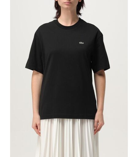 Lacoste T-shirt in cotone con patch logo Nero Taglia 34