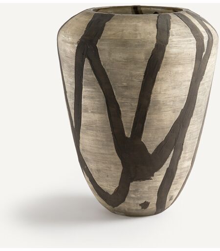 Con le striature sottili e irregolari, punteggiate da pennellate imperfette, che creano un contrasto grafico, e sottolineate dai toni metallici all'altezza del collo, questo vaso evidenzia una lavorazione del vetro eccezionale.Un oggetto decorativo a sé stante.Descrizione • Vetro rigato dipinto a mano, finitura opaca • Scollatura con effetto metallico color bronzo • Fabbricazione artigianale, ogni pezzo è unico. Forme, colori e dimensioni possono variare leggermente da prodotto a prodottoDimensioni • Diametro: 27,5 cm • Altezza: 35,5 cmDimensioni e peso del collo • 1 collo • L35,5 x H44,5 x P35,5 cm. 5,1 kg ...