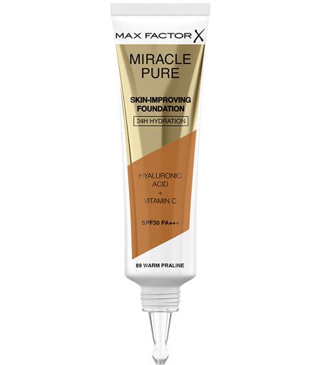 Max Factor Miracle Pure fondotinta per migliorare la pelle 24 ore di idratazione SPF30 #89-pralina calda