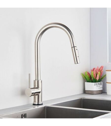 ROSMMEL Rubinetto da cucina con doccia rimovibile con fornitore multifunzione nichel spazzolato