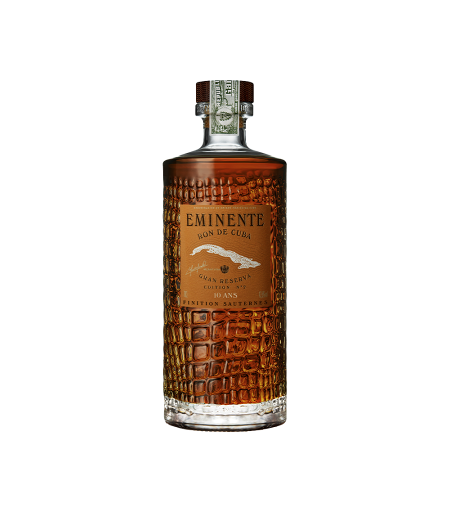 Un rum cubano elaborato a partire da aguardientes, le acquaviti più aromatiche di Cuba, distillate al 75% vol. e invecchiate in botti di rovere bianco che hanno contenuto whisky. La finitura in botti di Sauternes apporta complessità e offre un equilibrio al palato, con note di miele, frutta candita e spezie delicate. Eminente è uno dei pochi rum cubani a detenere la Denominazione di Origine Protetta (D.O.P.) Ron de Cuba, che ne garantisce l'autenticità e la qualità. La sua caraffa dal design unico ricorda le squame del coccodrillo cubano, l'animale simbolo dell'isola. La bottiglia moderna viene spesso riutilizzata dai consumatori come caraffa o vaso. Inoltre, la bottiglia e l'imballaggio sono realizzati con materiali riciclabili. ...