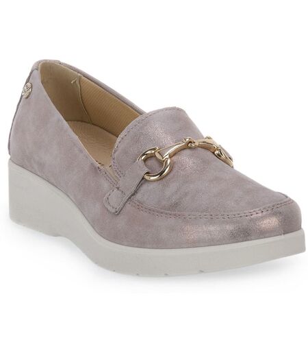 mocassino enval soft da donna in pelle taupe laminata con fodera in tessuto sottopiede estraibile in pelle con memory foam e fondo in gomma con zeppa di 3 5cm. colore: perl. nuv. taupe. ...