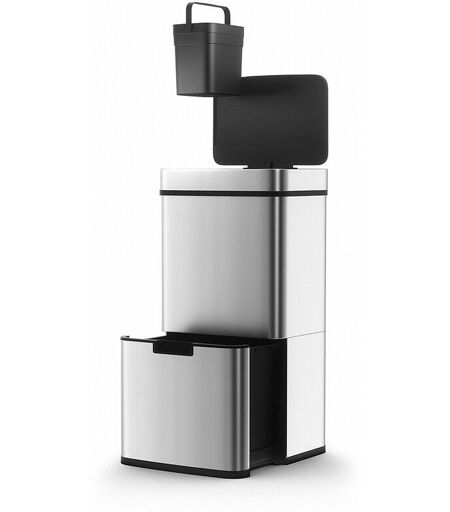 Cestino automatico con reggetta Capacità 75L modello NARVIK in acciaio inox Finitura in acciaio inox spazzolato Dimensioni: 42x32xH83cm Peso: 8,8kg. Grande capacità. Corpo in acciaio inossidabile (0,6 mm) e coperchio in acciaio inossidabile (0,4 mm). Funziona con 6 batterie LR06 (non incluse). Include: un anello di plastica per tenere la vostra pattumiera e un anello per il pavimento per proteggere i pavimenti fragili. Composizione: 1 bidone automatico da 47L (in alto) + 1 bidone da tavolo in plastica rimovibile da 3L (ideale per bucce o altri rifiuti) + 1 bidone da 25L sul fondo con 1 o 2 scomparti per la separazione dei rifiuti. Nuovo modello. Questo bidone ha tutto per piacere. Non c'è bisogno di nasconderlo in un angolo: rendetelo parte integrante del vostro arredamento. Ideale per la cucina, il bagno, l'ufficio e qualsiasi altro luogo occupato dove si ha bisogno di un cestino per i rifiuti. Nuovo design. Coperchio apribile a mani libere con un look moderno ed elegante. Cestino ...