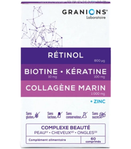 Granions Laboratoire Collagene + biotina + retinolo – complesso per la bellezza, 60 compresse