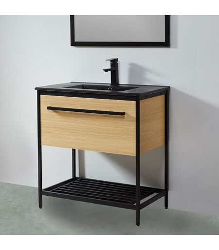 STANO. - Mobile bagno smart 80 cm in metallo nero con vasca ceramica nera