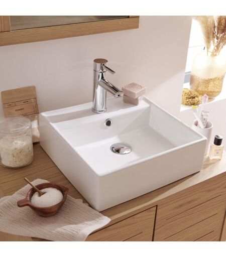 MOB-IN - Lavabo da appoggio quadrato in ceramica bianca nino da 38 cm