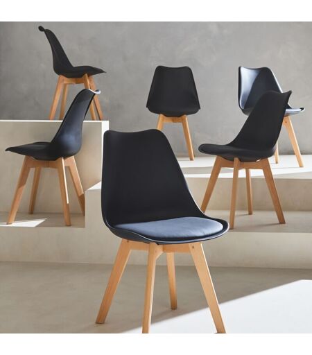 SWEEEK - Set di 6 sedie scandinave imbottite, con gambe in legno per sala da pranzo