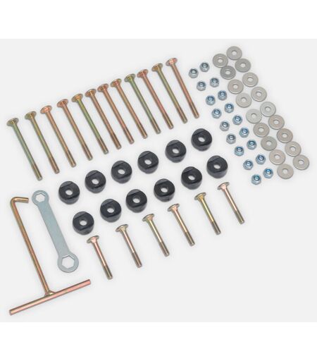 I punti di forza del prodotto Pezzi originali di sweeek perfettamente compatibili Sostituisci facilmente le viti del tuo trampolino con questo set di viti (rete interna o esterna). Questa confezione contiene : - 12 viti di fissaggio - 12 distanziali - 12 rondelle - 12 dadi autobloccanti - 6 viti per le gambe a U - 6 rondelle per le gambe a U - 6 dadi autobloccanti per le gambe a U - 1 tenditore a molla - 1 strumento Compatibilità : La compatibilità è garantita su tutti i trampolini del marchio sweeek, commercializzati dal 2016 ad oggi. In caso di dubbio, si prega di contattare il nostro servizio clienti. Ulteriori informazioni A seconda delle dimensioni del vostro trampolino, saranno necessari uno o due set di viti. ...