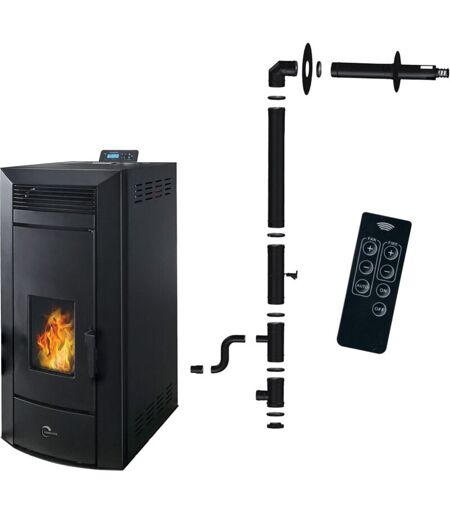 SANNOVER - Stufa a pellet idraulica a tenuta stagna Anita 21 kW Nero + Kit di installazione