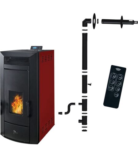 SANNOVER - Stufa a pellet idraulica a tenuta stagna Anita 21 kW Bordeaux + Kit di installazione