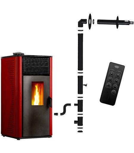 SANNOVER Stufa a pellet Anita 15 kW Bordeaux + Kit di installazione completo