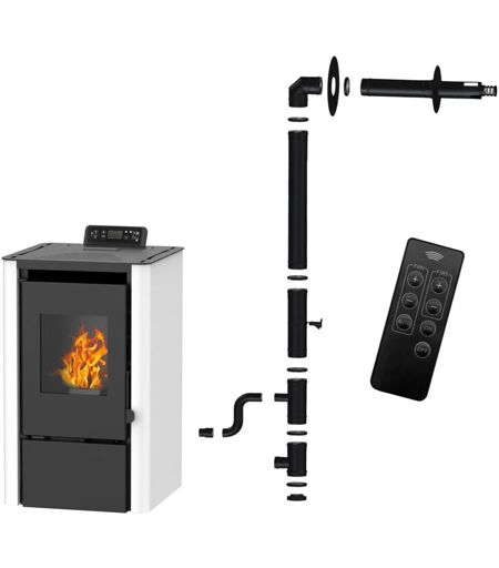 SANNOVER Stufa a pellet Anita 7,6 kW Bianco + Kit di installazione completo