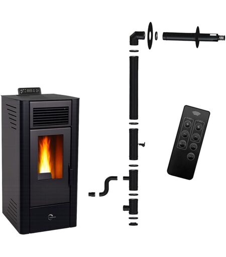 SANNOVER Stufa a pellet Anita 10 kW Nero + Kit di installazione completo