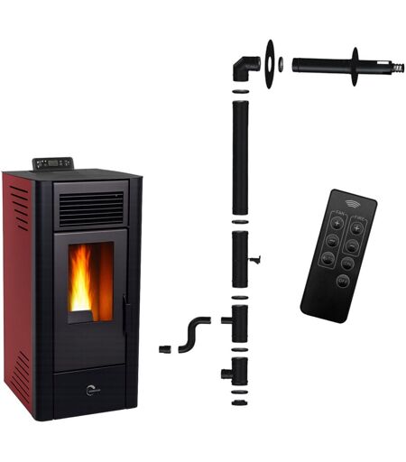 SANNOVER Stufa a pellet Anita 10 kW Bordeaux + Kit di installazione completo