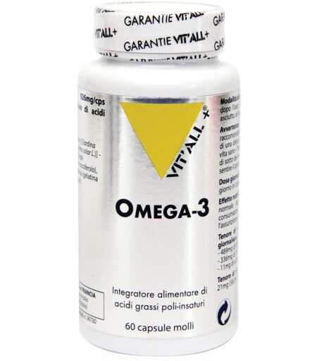Vital Plus - OMEGA 3 Indicazioni: può agire favorevolmente sul controllo dei lipidi plasmatici. Modalità d'uso: 3 perle al giorno ai tre pasti. Componenti: olio di pesce (sardina pilchardus e salmo solar) 930 mg (con il 33,5% di acidi grassi poliinsaturi); vit. e 7 mg; gelatina (gelatina alimentare… ...