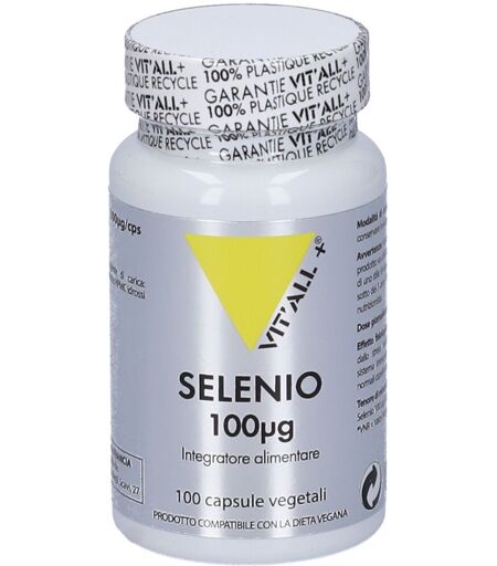 Gli integratori non sostituiscono un’alimentazione equilibrata e variegata e uno stile di vita sano. Integratore alimentare. Il selenio contribuisce a proteggere le cellule dallo stress ossidativo, partecipa al buon funzionamento del sistema immunitario e contribuisce a mantenere in condizioni normali capelli e unghie. Ingredienti: Selenio (L-seleniometionina); agente di carica: lithothamne; agente di rivestimento: Hpmc idrossi propil metilcellulosa. Valori medi per dose giornaliera %Vnr* Selenio 100 mcg 181% *Vnr: Valori Nutritivi di Riferimento Assunzione consigliata: Assumere 1 capsula al giorno. Avvertenze: Non superare la dose giornaliera raccomandata. Tenere fuori dalla portata dei bambini al di sotto dei tre anni. Conservazione: Conservare in un luogo fresco e asciutto. Si prega di fare riferimento, se necessario, ad ulteriori istruzioni riportate sulla confezione. Contenuto: 100 capsule Produttore: Vit'all+ 5 Rue Des Noisetiers Sarges Les Le Mans Francia ...