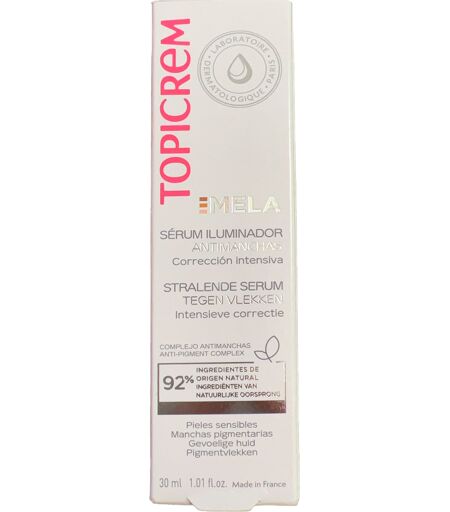 Scopri un incarnato più luminoso e uniforme con TOPICREM Mela Serum, una soluzione potente ma delicata per ridurre la comparsa di macchie scure e iperpigmentazione. Questo siero leggero e ad assorbimento rapido agisce in profondità nella pelle per colpire l´eccessiva produzione di melanina, la causa principale del tono disomogeneo della pelle.Scopri i benefici trasformativi:Riduce visibilmente la comparsa di macchie scure, macchie dell´età e macchie solari.Promuove un incarnato più luminoso e radioso.Uniforma il tono della pelle per un aspetto impeccabile.Idrata e leviga la grana della pelle.Leggero e ad assorbimento rapido, ideale da stratificare sotto il trucco.TOPICREM Mela Serum è formulato con una potente miscela di ingredienti attivi accuratamente selezionati per la loro efficacia e delicatezza:Questo siero è adatto a tutti i tipi di pelle, anche le più sensibili. È privo di per garantire una tollerabilità ottimale.Integra TOPICREM Mela Serum nella tua routine quotidiana di cura della pelle per un incarnato radioso e uniforme che amerai.Attributi: Tutti i tipi di pelle, Viso, SieriSpecifiche tecniche:Volume: 30mlTexture: Siero leggeroApplicazione: Applicare mattina e/o sera sulla pelle detersa. Seguire con la protezione solare durante il giorno. ...