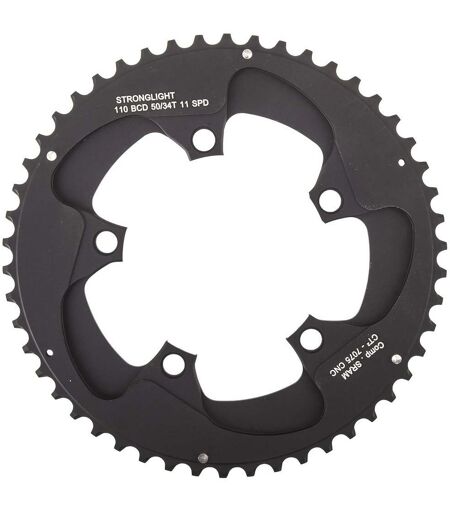 Corona STRONGLIGHT CT2 a 5 bracci, per 11 velocità, diametro del cerchio 110 mm, confezione self-service nera, con rivestimento in ceramica-teflon, senza filettatura, adatta per SRAM Red 22 / Force 22.SPECIFICHE:-52 denti, esterna (combinabile solo con 38 denti). ...