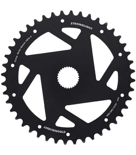 Corona STRONGLIGHT per monocorona, alluminio 7075, anodizzato nero in confezione self-service, denti CNC, attacco diretto, design classico, estremamente leggera grazie al design aperto, compatibile con sistema Bosch Gen.4, con spaziatore, linea catena 44mm.SPECIFICHE:-38 denti. ...